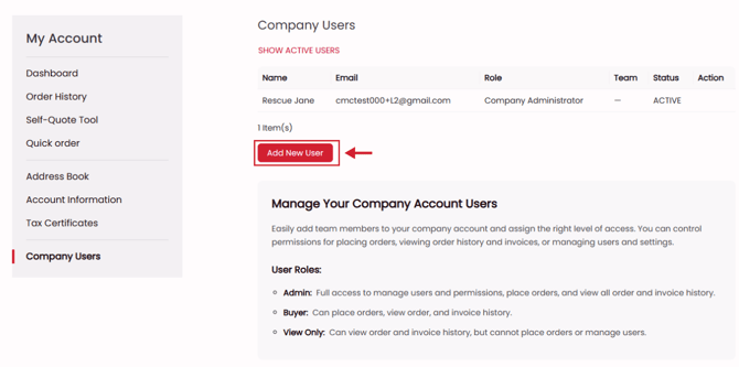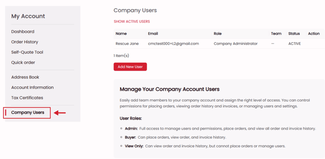 View Only: Can view order and invoice history, but cannot place orders or manage users.
