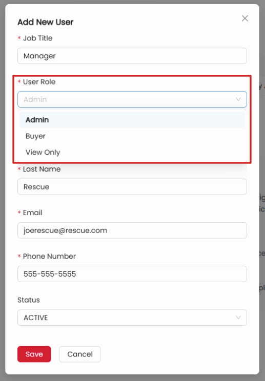 Admin: Full access to manage users and permissions, place orders, and view all order and invoice history.