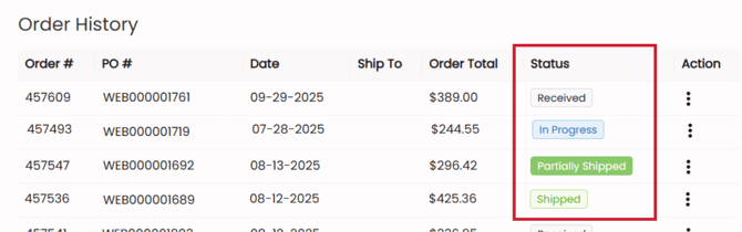 - You order status can be found of the Order History table