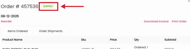 - From your account dashboard, select Order History