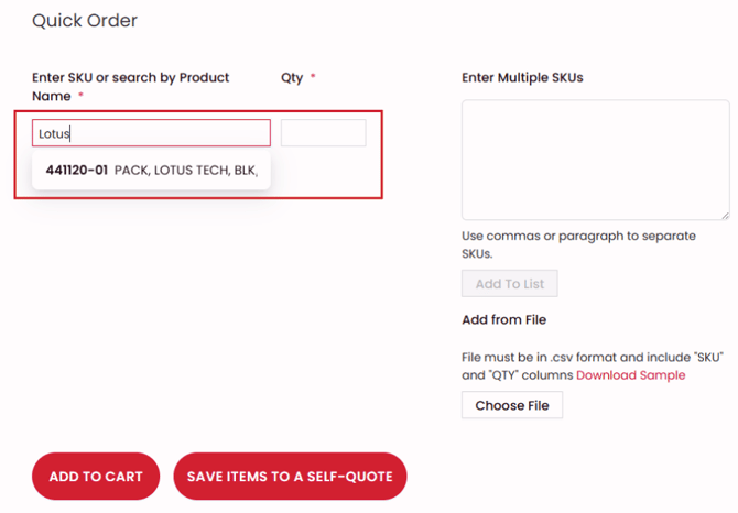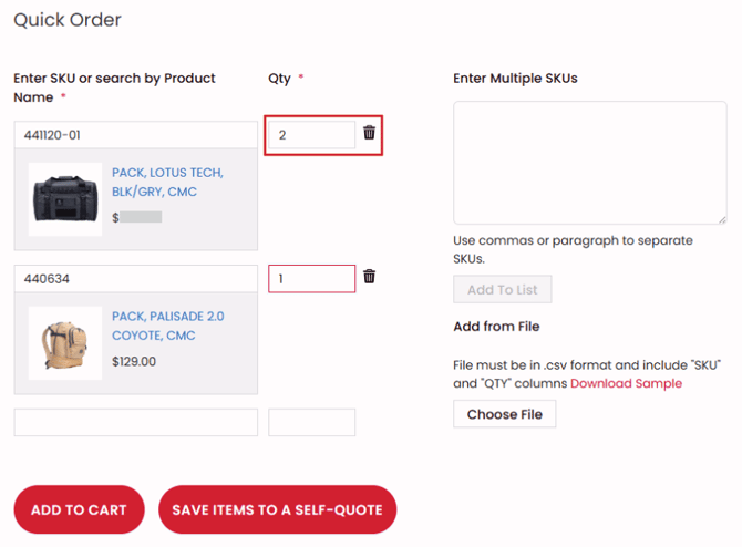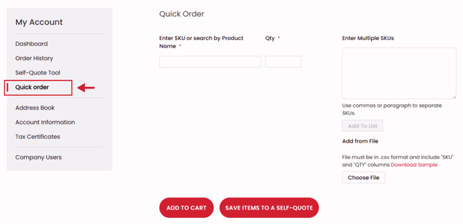 Quickly add items to your cart or Self-Quote using 3 different methods