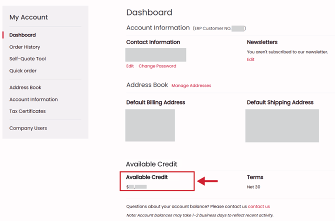 - Credit card transactions will be disabled at checkout if you have a payment terms account.